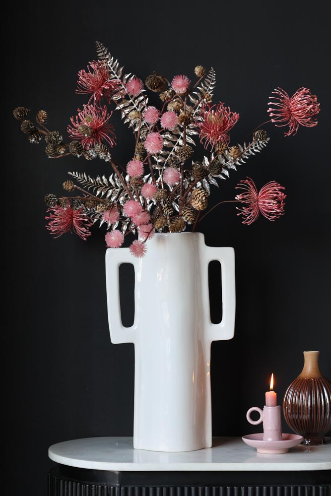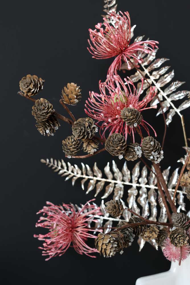 The ideal accessory to welcome in the festive season, curate a showstopping floral arrangement for the centre of your Xmas tablescape or mantelpiece with this faux Christmas tree branch styled with the Faux Pinecone Branch Stem and the Faux Pompom Flower Stem. Alternatively, display this faux branch on its own draped across a windowsill or shelf for little touches of festive magic dotted around your home.