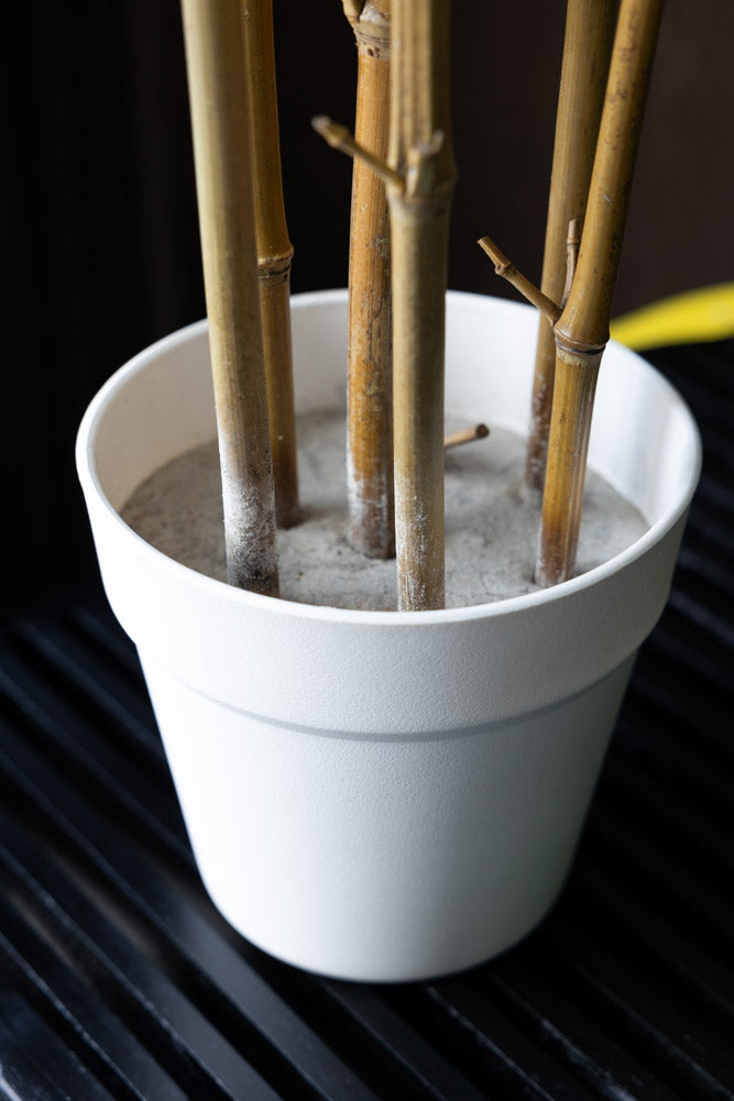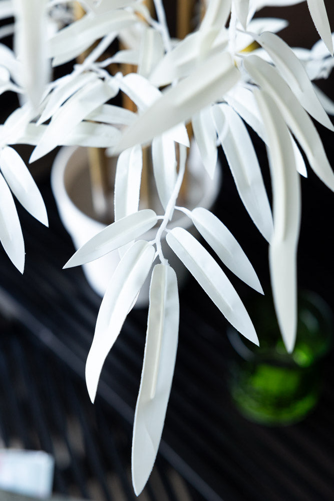 Add a breath of fresh air to your home with the Potted Bamboo Ornament. Featuring natural wood-toned bamboo stems and soft white leaves, this faux plant brings a calming, clean aesthetic to any room. Housed in a small white pot, this plant injects a bohemian, refreshing, laid-back vibe into your home, perfect for those who appreciate simplicity with the serenity of nature. This potted bamboo ornament effortlessly complements a variety of interiors, whether placed in your bedroom or living room for an earthy touch, or even your bathroom for a tranquil, spa-like atmosphere. Its light, airy look is amazing for creating a calming ambience, making it a beautiful addition to any corner of the home. Let the Potted Bamboo Ornament In Natural bring refreshing beauty into your home that feels both modern and timeless, creating a space that's calm and full of effortless style.