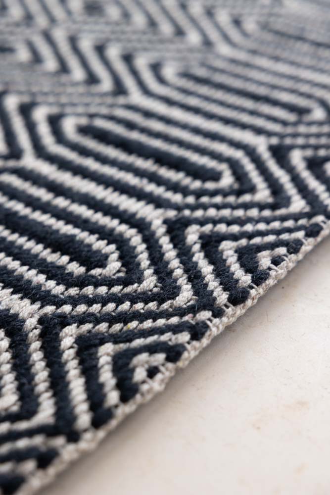 The Sloan Monochrome Geometric Rug is a modern and bold choice of rug that’ll elevate your interior with style. Showcasing an eye-catching pattern with a neutral colour palette, this hand-woven rug features a chic geometric design in a black and white colour palette creating a striking contemporary look. Offering a plush texture with its soft cotton and wool materials, this monochrome rug does not have a deep pile so it’s easy to maintain and perfect for apartment living. We think it would look utterly stunning underneath a table.