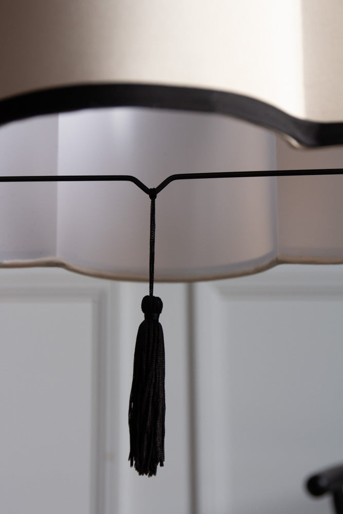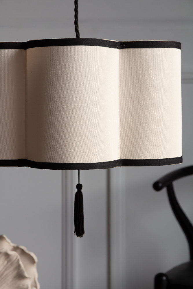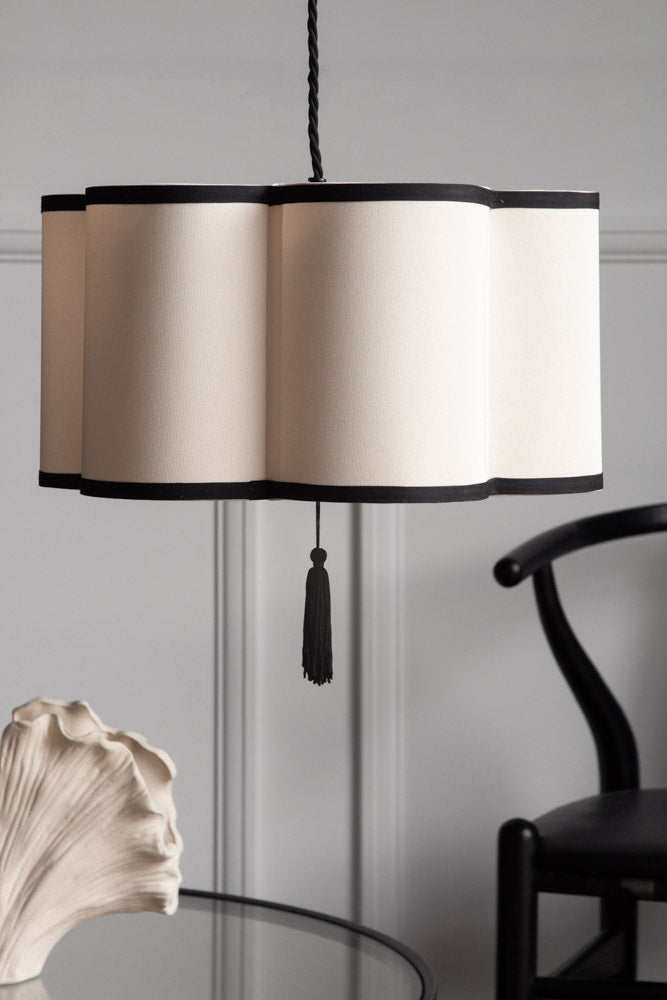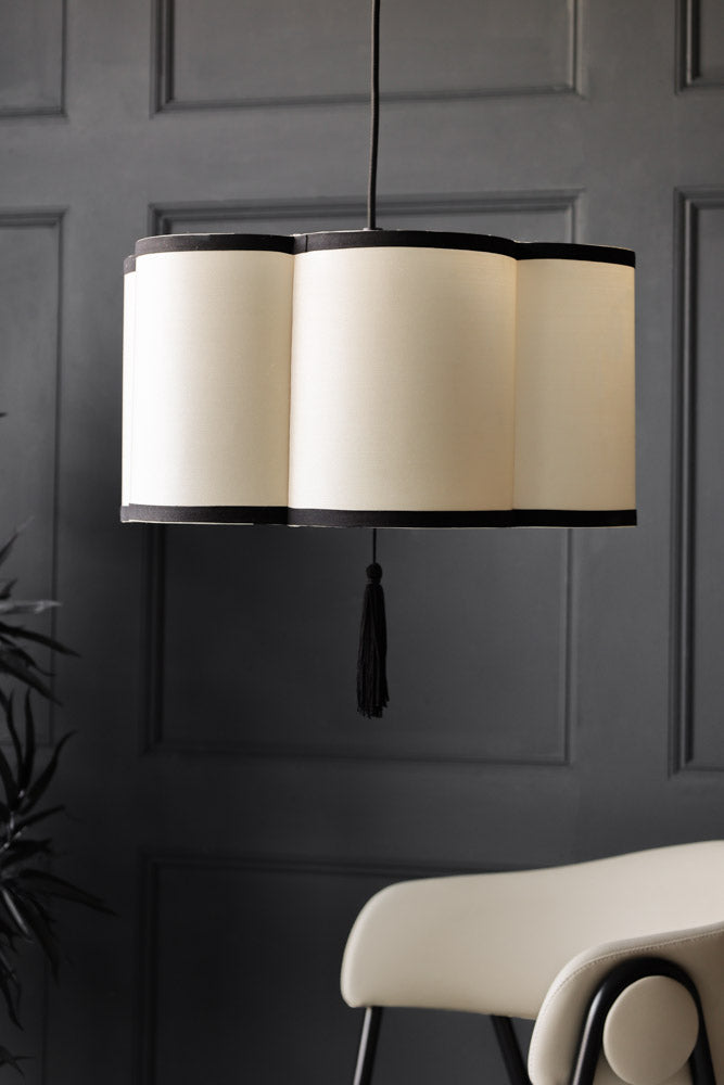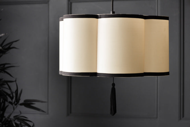 A striking and unusual shape, the Black & Cream Lantern Ceiling Light Shade features a gorgeous curved shape made from a smooth and stretchy silk style fabric adorned with a sleek black trim and decorative black tassel. Showcasing a sumptuous shape that is totally unique, this ceiling lamp shade will emit the most glorious glow into your interior scheme. Offering a standard screw fitting, this cream shade is only suitable for ceiling lights, not table lamps, and is conveniently functional yet stylish, so what’s not to love?!