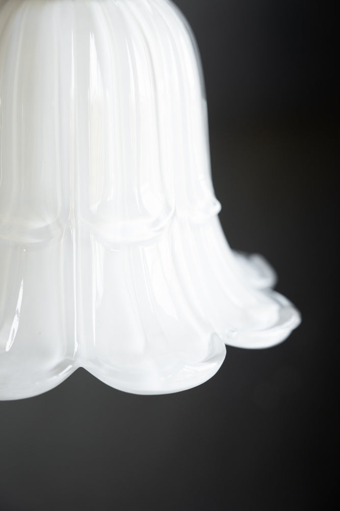 Invite timeless elegance into your home with the Frosted White Vintage Style Glass Easy Fit Ceiling Light Shade. Showcasing a gentle, frosted white glass in a beautiful upside-down flowery shape, this light shade adds a perfect vintage touch to any space. The frosted finish provides a soft, diffused light, making an inviting atmosphere, and working perfectly with both traditional and modern spaces.