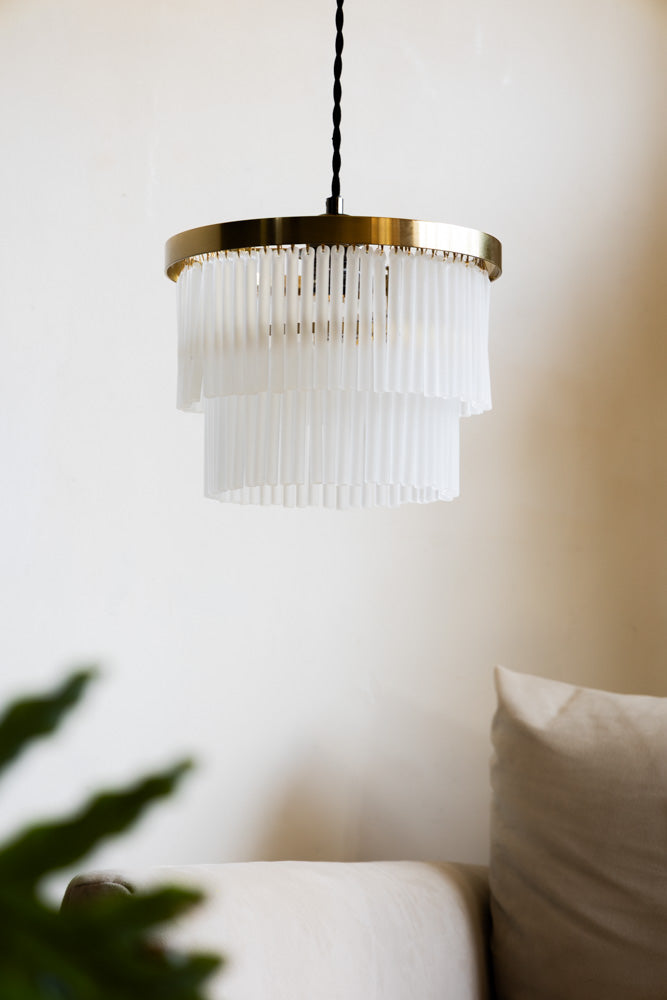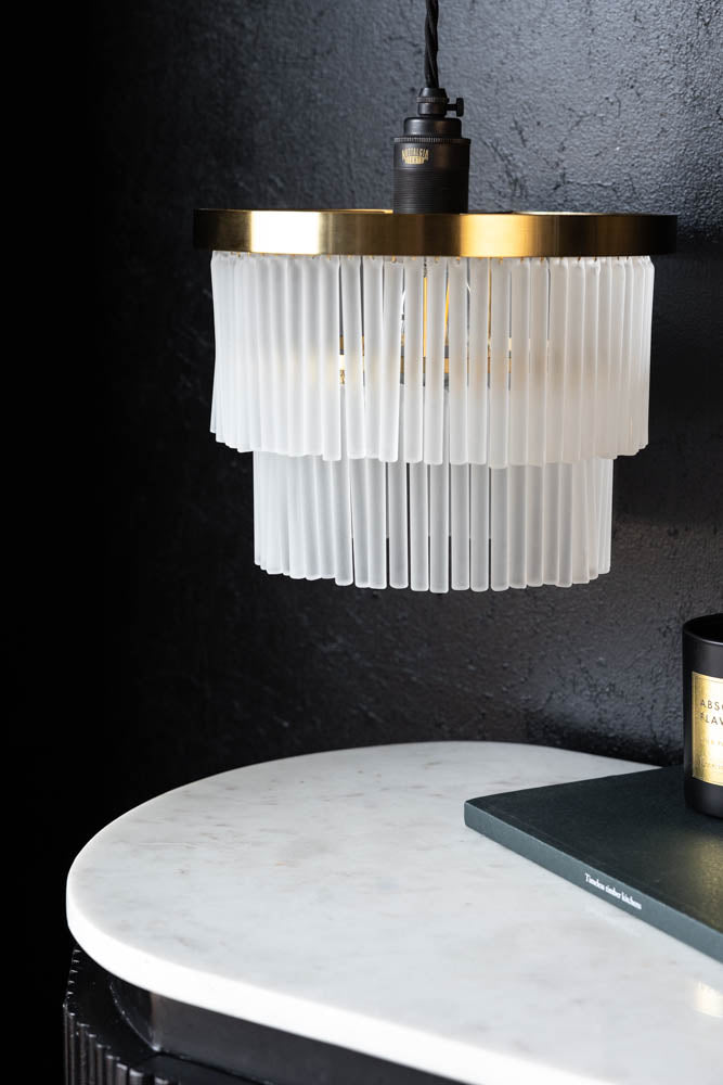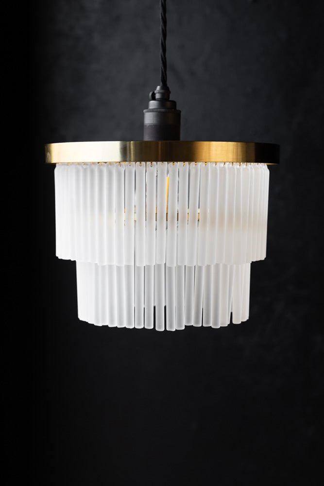 - Gold tiered pendant light shade with frosted glass droplets