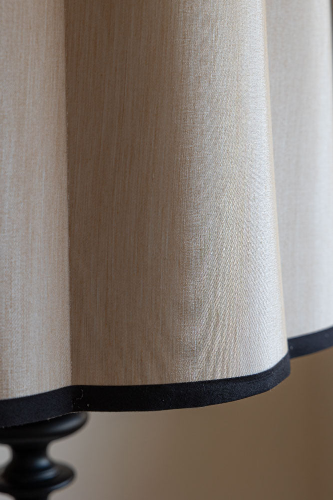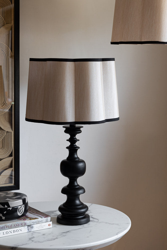 Add a soft, whimsical touch to your space with the Oyster Scalloped Easyfit Lampshade, in a delicate oyster tone with a subtle blush sheen. This lampshade brings a light-hearted elegance to any room, featuring scalloped edges and a sleek black trim that is endlessly sophisticated. A beautiful addition for brightening up a cherished cosy corner or adding a gentle glow to your bedroom, this lampshade feels fresh and inviting. However, what really sets this lampshade apart is the easy-fit design, ensuring a quick hassle-free installation, making it the perfect choice for a simple yet stylish upgrade to your décor.