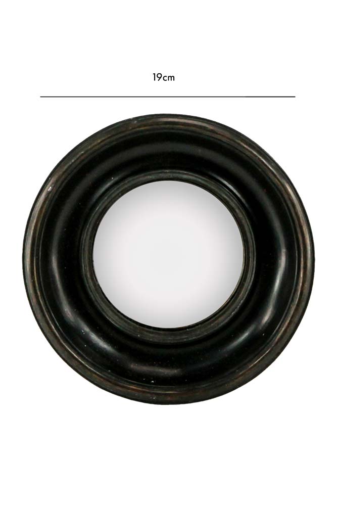 The Antique Black Deep Framed Small Convex Mirror is the perfect mirror to add interest to your walls. Made with a deep distressed black frame, the small wall mirror inside features a convex finish. Measuring H19cm x W19cm x D4cm, the black round mirror is part of a collection of chic convex mirrors that can be styled solo or displayed together on the walls of your home.