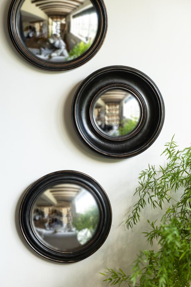 The Antique Black Round Framed Medium Convex Mirror is equal parts mirror and wall art. Simple and chic, the mirror features a distressed black frame, with a convex mirror inside. Measuring H19cm x W19cm x D3cm, the black round mirror is part of a collection of fabulous convex mirrors that can be styled creatively around your home.