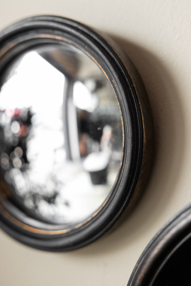 Mirrors are one of the best design tricks out there and reflect light back into the room to help create a brighter and more spacious feel in even the smallest spaces. As a result, we are always looking to expand the designs in our mirror collection and the Antique Black Thin Framed Small Convex Mirror is a fabulous design that joins our growing collection of convex mirrors. Quirky and cool, this black wall mirror can be styled solo or introduced in a gallery wall format with a handful of coordinating convex mirrors in all shapes and sizes.