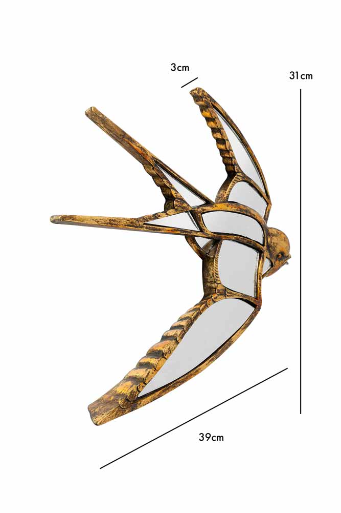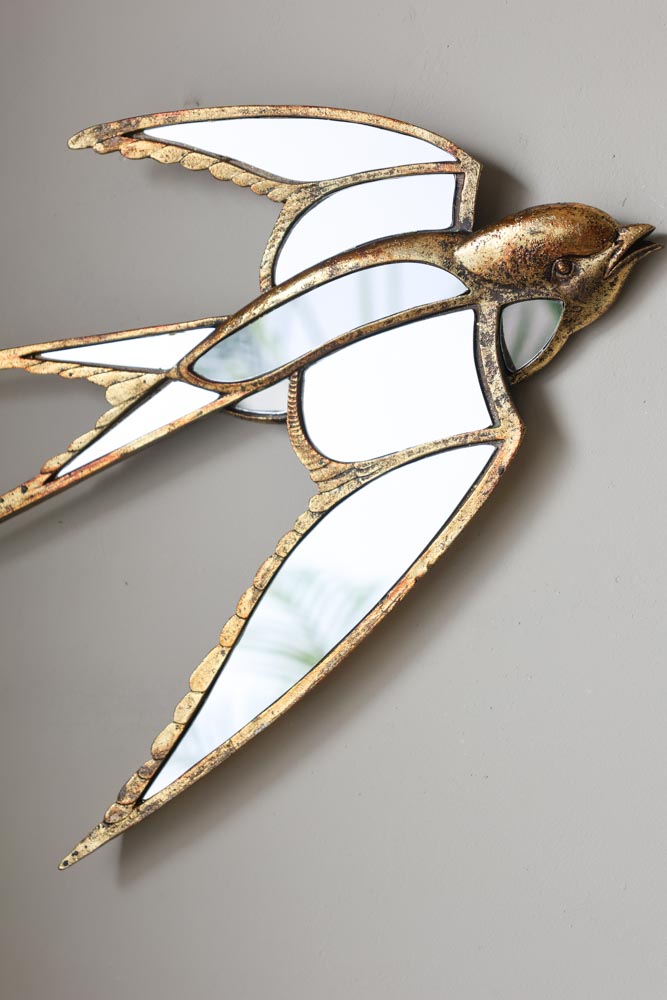 Introducing intrigue to your walls, this is unique wall art design is a great alternative to art prints when it comes to celebrating nature in your home. Designed in the shape of a swallow, the scalloped wing details and aged brass finish give this piece a vintage feel that will blend right in amongst the rest of your treasures. Plus, the mirrored panels will reflect light back into the room and create a feeling of space in even the smallest of spaces.