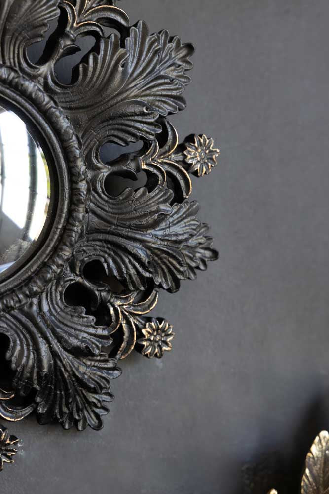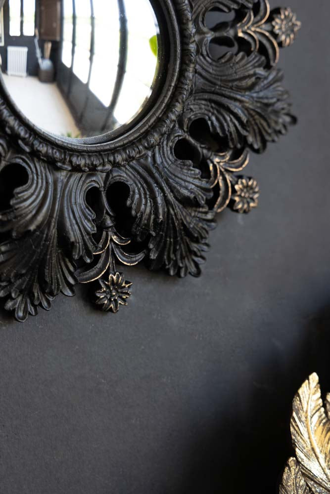 The Small Black Flowers & Leaves Convex Mirror is one of our favourite pieces for adding something different to a gallery wall. From the black ornate mirror frame to the accents of antique gold, the design introduces a nod to gothic glamour on the walls of your home. Jane and Lucy believe you don’t have to spend a fortune on art to create an epic picture wall. Instead, you can add framed postcards, kids' artwork, posters, plates or convex mirrors to the walls for a magical exhibition of all your favourite things. Perfect for spaces that are missing something small yet remarkable to bring a look together, this black wall mirror is affordable luxury at its very best. To take the Versailles vibes a step further, why not display the black & gold decorative wall mirror with a collection of round wall mirrors in various sizes? We are becoming slightly obsessed with convex mirrors in our homes, and this fabulous framed mirror is next on the wish list!