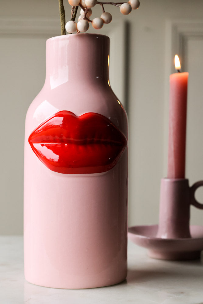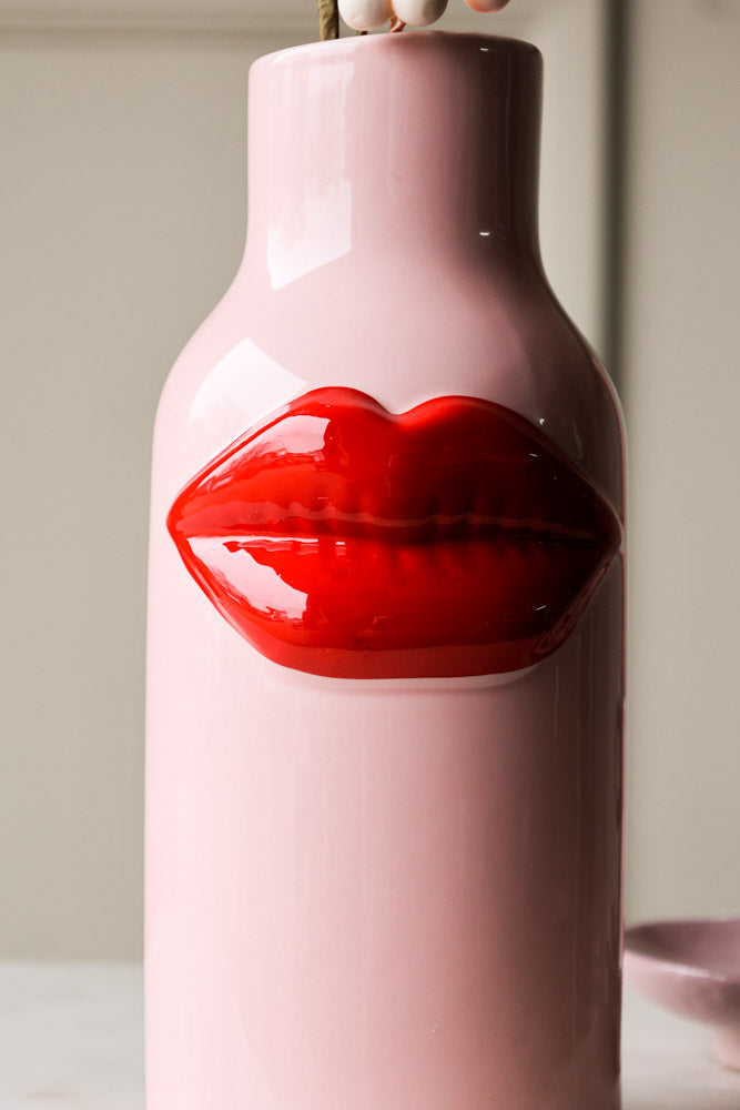 About The Pink Ceramic Vase With Luscious Red Lips